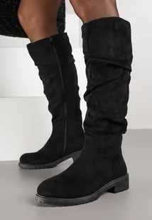 Czarne Marszczone Kozaki Typu Muszkieterki Clafira