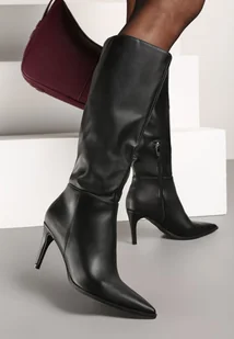 Czarne Ocieplane Kozaki Vices na Szpilce w Klasycznym Stylu Tamelith