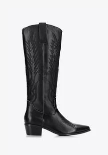 Damskie kowbojki skórzane z haftem wysokie czarne 37