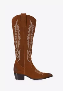 Damskie kowbojki zamszowe z haftem wysokie brązowe 37