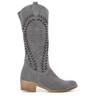 Damskie kozaki ażurowe skórzane Carla szare - Buty Olivier