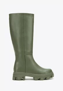 Damskie kozaki skórzane na grubej podeszwie z suwakiem ciemny zielone 39