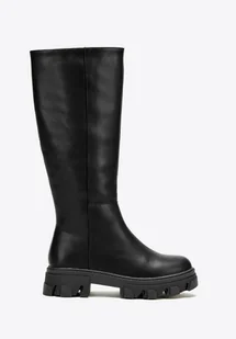 Damskie kozaki skórzane na grubej podeszwie z suwakiem czarne 36