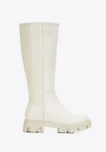 Damskie kozaki skórzane na grubej podeszwie z suwakiem szarobeżowe 35