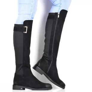 Czarne zamszowe kozaki na płaskiej podeszwie