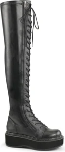 EMILY-375 DemoniaCult damskie kozaki za kolano na platformie czarne stretch-pu z otwartym zamkiem błyskawicznym