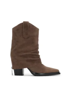 Jasnobrązowe kowbojki z zamszu z ozdobnym suwakiem