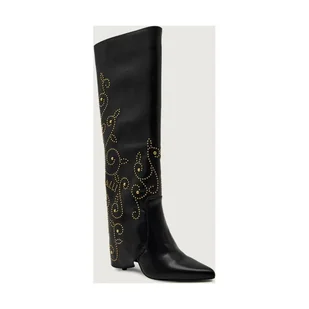 Czarne kozaki na szpilce ze złotym łańcuchem Casu 2640