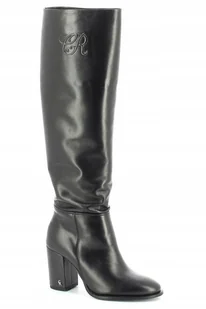 Czarne Kozaki Carinii Skórzane Buty Na Obcasie