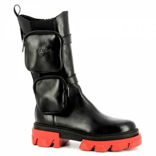 Czarne kozaki Carinii z czerwonymi elementami w podeszwie