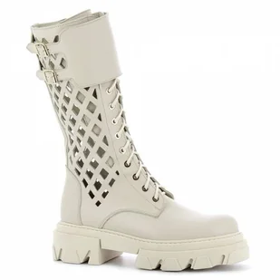 Kozaki na grubej podeszwie to hit tego sezonu! Buty te wykonane są z wysokogatunkowej, naturalnej skóry. Model ten zaprojektowaliśmy specjalnie dla kobiet, które uwielbiają wyróżniać się nietuzinkowym wyglądem. Na skórzanej, matrycowanej cholewce umieściliśmy ozdobny pasek, który pełni funkcję dekoracyjną, nadając niebanalnego wyglądu. Poprzez sznurówki możesz idealnie dopasować buty do szerokości każdej łydki, a od wewnętrznej strony znajduje się suwak, który ułatwia ich zakładanie. Te kozaki pasują zarówno do eleganckich i codziennych outfitów - sprawią,
