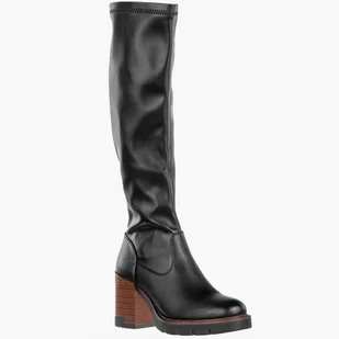 Kozaki Damskie Ekoskóra Buty Na Słupku Przed Kolano Czarne Potocki 25-12246BKBR Czarny 37