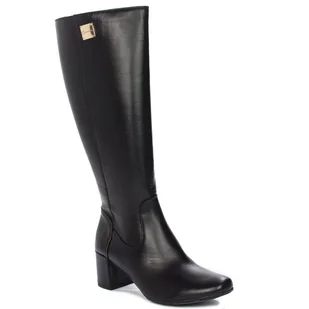 Wnętrze to ciepła i miła w dotyku, miękka tkanina. Po wewnętrznej stronie umieszczono zamek błyskawiczny ułatwiający zmianę obuwia. Obcas to wygodny słupek o wysokości 5,5 cm. Model idealny do sukienki czy spódnicy, uzupełni wiele pięknych stylizacji. Kolor Czarny Pięta Zamknięta Nosek Zamknięty Okrągły Obcas Słupek Wysokość cholewki 37 cm Zapięcie Zamek Wysokość obcasa 5.