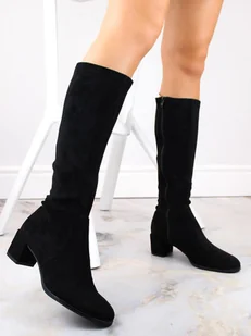 Czarne Klasyczne Kozaki przed Kolano VICES na Słupku Unalora