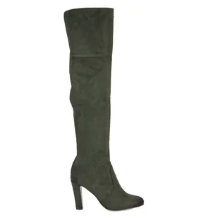 Kozaki na szpilce w pięknym kolorze stonowanej zieleni to oryginalny dodatek do jesiennych stylizacji. Są eleganckie, mają ponadczasowy, kobiecy krój. Wygodę stopie zapewni mocna, stabilna szpilka, a także wyprofilowana wkładka, która ma za zadanie zmniejszać nacisk na stopę. Buty wyprodukowane zostały z odpornej na uszkodzenia tkaniny, nie przeciekają i chronią przed chłodem. Eleganckie, kobiece, a zarazem ciepłe i wygodne - takie są właśnie buty Vinecnza, zielone kozaki na obcasie.