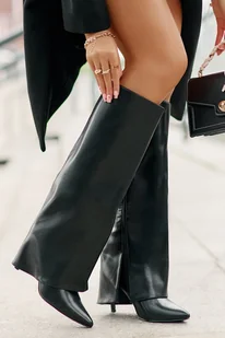 Kozaki na obcasie świetnie sprawdzą się w wielu stylizacjach. Wyjątkowy fason zachwyci każdego! Kozaki są stabilne oraz wygodne w użytkowaniu. Musisz je mieć w swojej szafie ! Wykonane z eko skóry, te szpilki mają wyjątkowy design z wywiniętą cholewką, która elegancko zachodzi na obcas. Smukłe noski w szpic podkreślają ich szykowny charakter, a zamek ułatwia zakładanie. Osadzone na wysokim obcasie, są doskonałym wyborem do stylizacji z sukienkami i spódnicami, dodając im wyjątkowego, modowego akcentu.