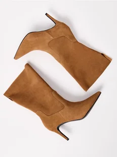 Reserved - Zamszowe kozaki na szpilce - brązowy