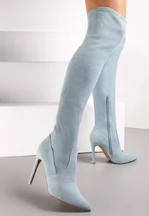 Niebieskie Kozaki za Kolano na Szpilce ze Szpiczastym Noskiem Aviciana - Renee