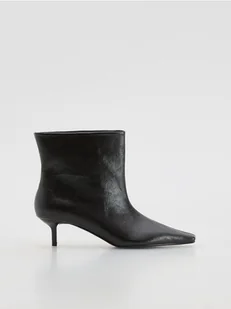 Buty typu botki, wykonane z imitacji skóry.