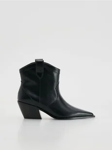 Reserved - Skórzane botki na obcasie - czarny