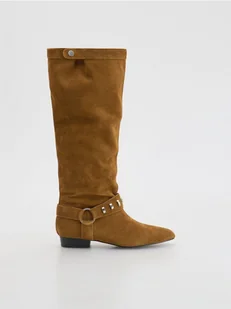 Reserved - Zamszowe kozaki - ciemnobrązowy