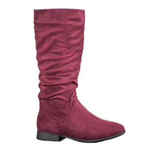 Zmysłowe i eleganckie kozaki damskie w kolorze czerwonego wina. Buty wyprodukowano przy użyciu zamszu ekologicznego najwyższej klasy. Dzięki temu buty mogą nosić także osoby, które nie używają produktów stworzonych ze skóry naturalnej. Kozaki będą pasować zarówno do stylizacji casualowych, jak i bardziej formalnych. SHELOVET Zamszowe Kozaki Przed Kolano czerwone.