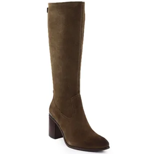 Skórzane kozaki na słupku damskie khaki Sergio Leone 25668