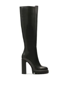 Skórzane kozaki na wysokim obcasie i platformie - 41