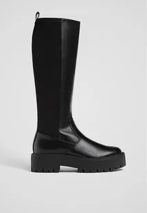 Stradivarius Wysokie kozaki na płaskiej podeszwie Czarny 41