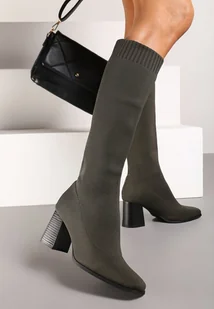 Zielone Kozaki na Słupku ze Elastyczną Cholewką Ellitra