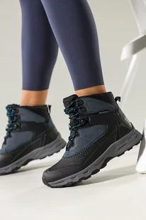 Czarne buty sportowe trekkingowe damskie wodoodporne na bieżnikowanej podeszwie sznurowane granatowe wstawki Casu 7688-2D