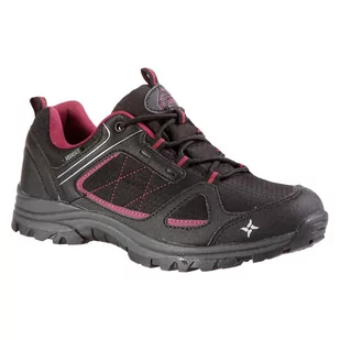 Lekkie, damskie buty hikingowev, zaprojektowane z myślą o mniej wymagających wycieczkach w niższe partie gór. Wyposażone w wodoodporną i wiatroszczelną powłokę AQUABASE(R), chronią przed deszczem i zapewniają optymalne odprowadzanie potu iciepła. Cholewka z wytrzymałego materiału została wzmocniona otokiem z syntetycznego materiału, który chroni wierzch przed uszkodzeniami o napotkane na szlaku kamienie czy korzenie. Na bocznych panelach umieszczono odblaskowe elementy, które poprawiają widoczność użytkownika po zmroku. Podeszwa zewnętrzna z przyczepnej gumy, posiada wielokierunkowy bieżnik stabilizując buty, na zróżnicowanym podłożu.