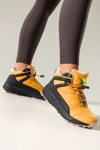 Żółte buty sportowe trekkingowe damskie wodoodporne na bieżnikowanej podeszwie z regulowaną elastyczną sznurówką czarne wstawki Casu 7493-4D