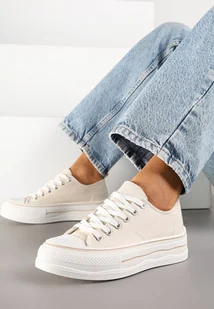 Beżowe Klasyczne Trampki na Grubej Podeszwie Natileva