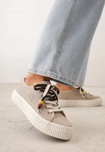 Beżowe Niskie Trampki z Podwójnymi Sznurówkami na Tłoczonej Platformie Astedella