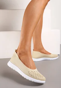 Beżowe Płaskie Tenisówki Zdobione Cyrkoniami Lomadia