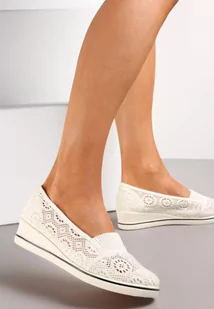 Beżowe Tenisówki z Ażurowej Siateczki na Niskiej Koturnie Nerurae
