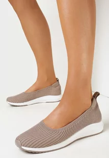 Beżowe Tenisówki z Elastyczną Cholewką Uzane