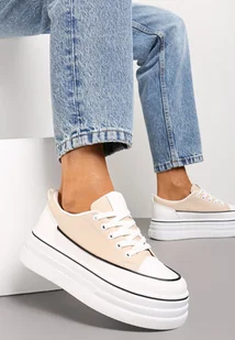 Beżowe Trampki na Grubej Platformie Santtes - Renee