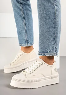 Beżowe Trampki na Grubej Podeszwie Ozdobione Metaliczną Aplikacją Efadelis