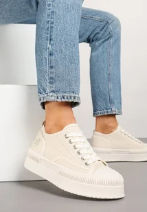 Beżowe Trampki na Platformie z Metaliczną Ozdobą Afleeria