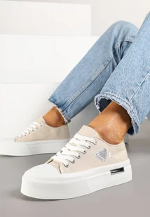 Beżowe Trampki na Platformie z Ozdobnym Napisem i Sercem Laviere