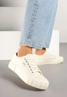 Beżowe Trampki na Tłoczonej Platformie Maivoria