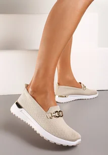 Beżowe Wsuwane Tenisówki w Stylu Mokasynów Ozdobione Klamrą Wiatalia