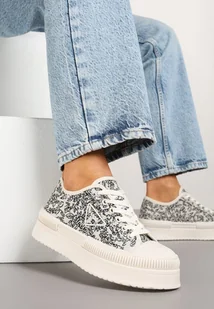 Beżowo-Czarne Trampki na Platformie z Abstrakcyjnym Wzorem Wulinea