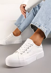 Białe Casualowe Trampki przed Kostkę na Platformie ze Sznurowaniem Reapita