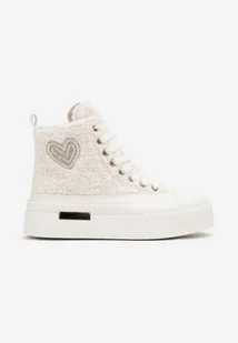Futerkowe Trampki Aelinna to kwintesencja stylu połączona z komfortem. Platforma zapewnia stabilność i komfort noszenia, a sznurowanie gwarantuje doskonałe dopasowanie do stopy. Ozdobna naszywka w kształcie serca dodaje uroku i podkreśla indywidualny charakter obuwia. Idealne na co dzień w zestawieniu z casualowymi jeansami i oversizowym swetrem.