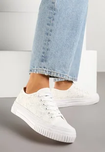 Białe Klasyczne Trampki z Cholewką z Haftem Meppane