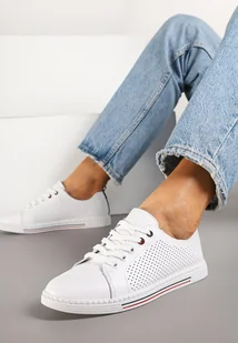 Białe Płaskie Tenisówki ze Skóry Naturalnej z Perforacją i Skórzaną Wkładką Aliwa - Renee