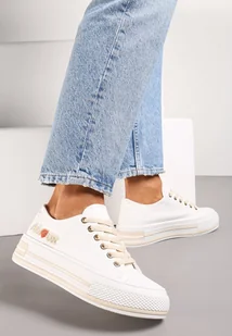 Białe Sznurowane Trampki na Grubej Podeszwie z Aplikacją Aniler - Renee